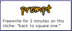 Wow, three minutes is fast when you're writing, even if you're just free-writing about being back to square one. Oofta. Only thing worse than using cliches is free-writing about them. Well, maybe there are a few things worse. Stepping in gum, for example.